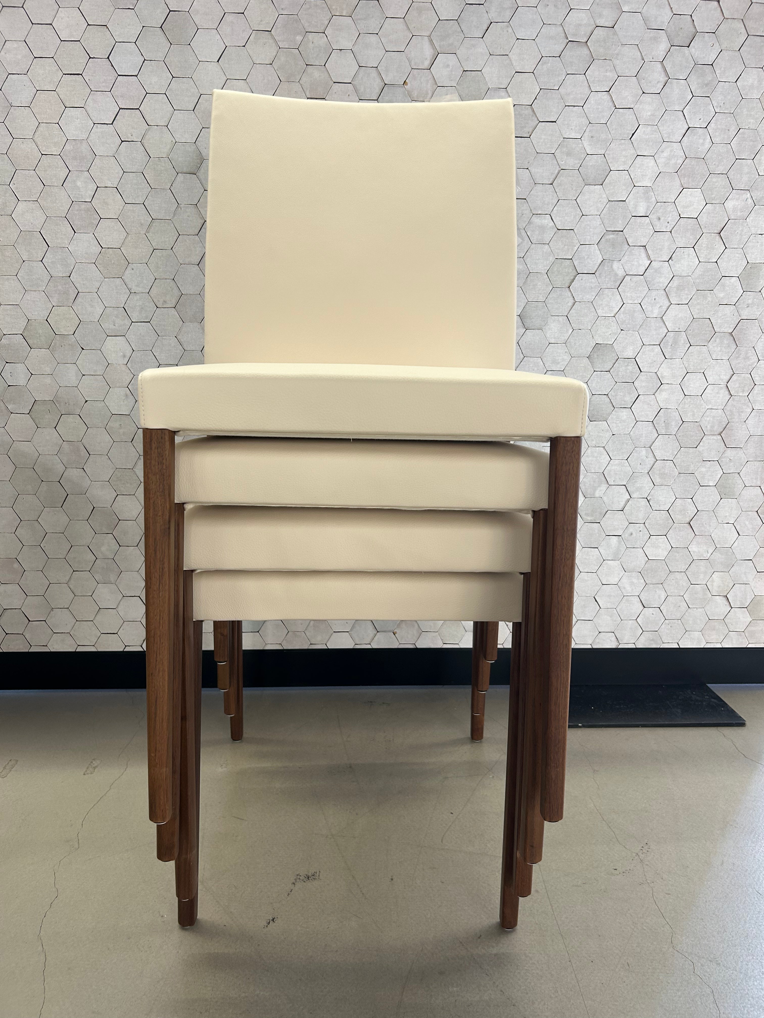 Die klare, reduzierte Form des Jason Lite Chairs sorgt für unerwartet hohen Sitzkomfort, der dem eines Sessels gleicht. Durch die Taschenfederkerne im Sitz und Torsionsfedern im Rücken bleibt der Komfort langfristig erhalten. Der Stuhl ist filigran, leicht, stapelbar Mit einem eleganten Lederbezug Casmere in der Farbe sandshell und einem Gestell aus edlem Nussbaumholz, kombiniert der Jason Lite Chair hochwertige Materialien und zeitloses Design.