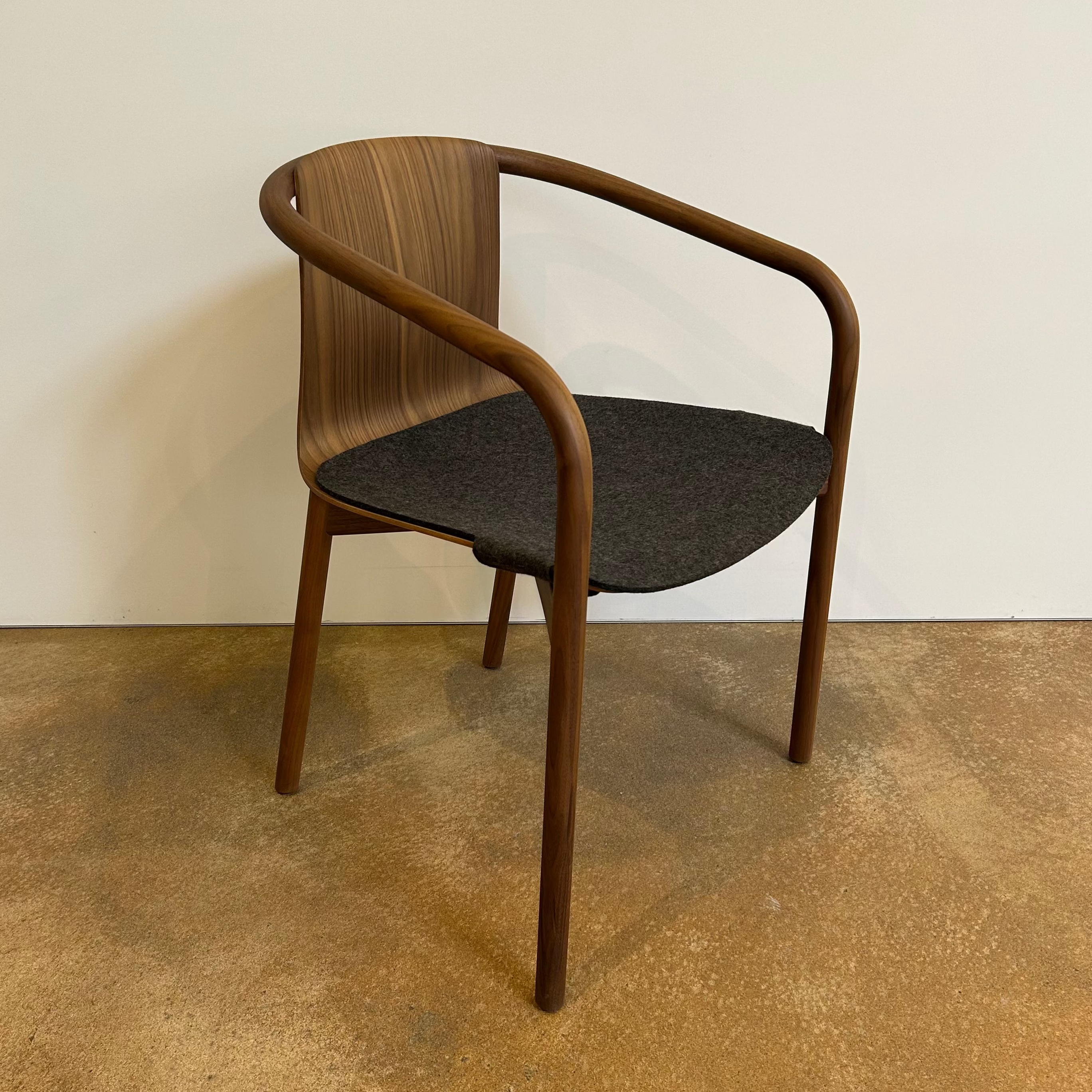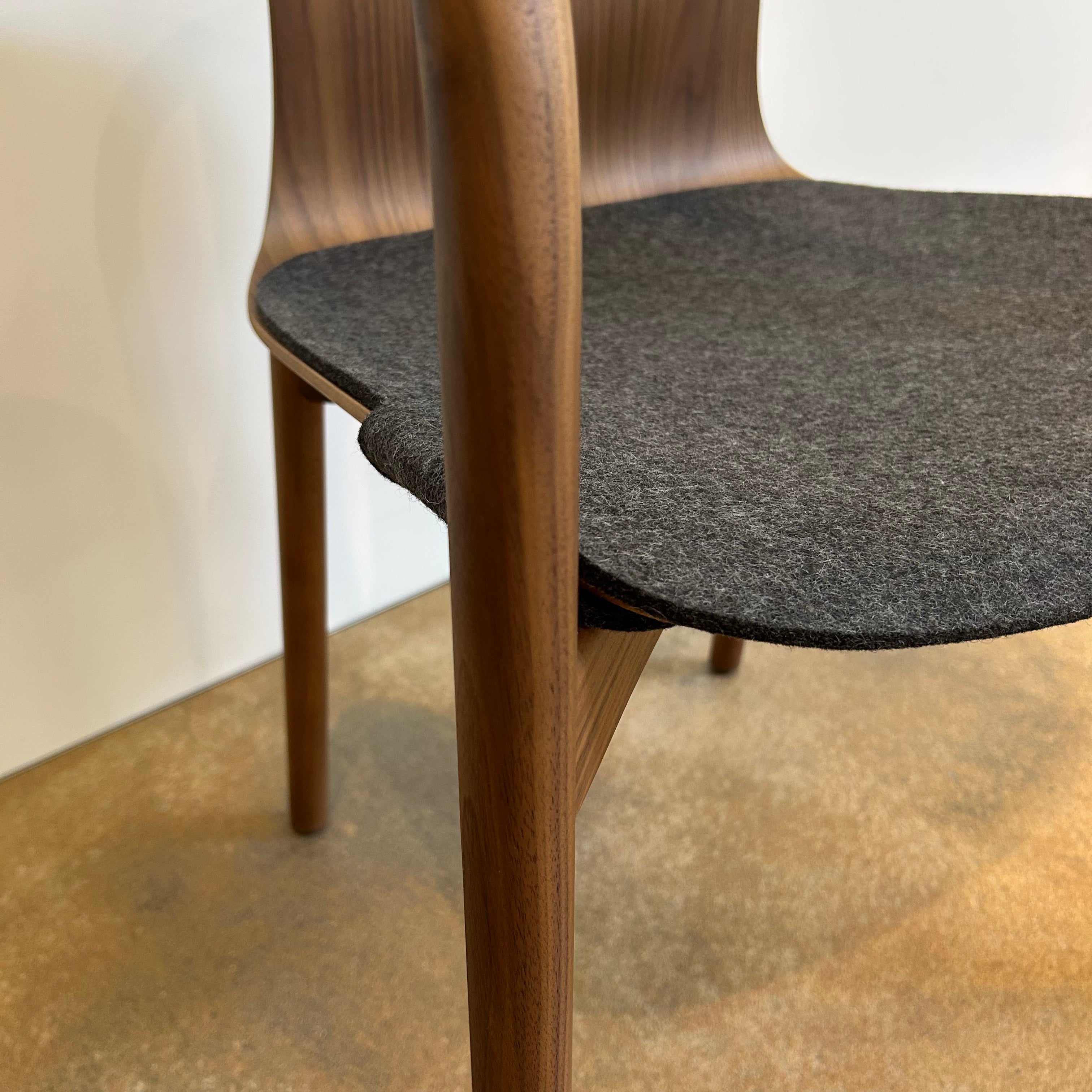 Ausführung: Nussbaum mit Splintanteil, Kissenauflage aus Wollfilz Farbe 7808 anthracite, Kunststoffgleiter