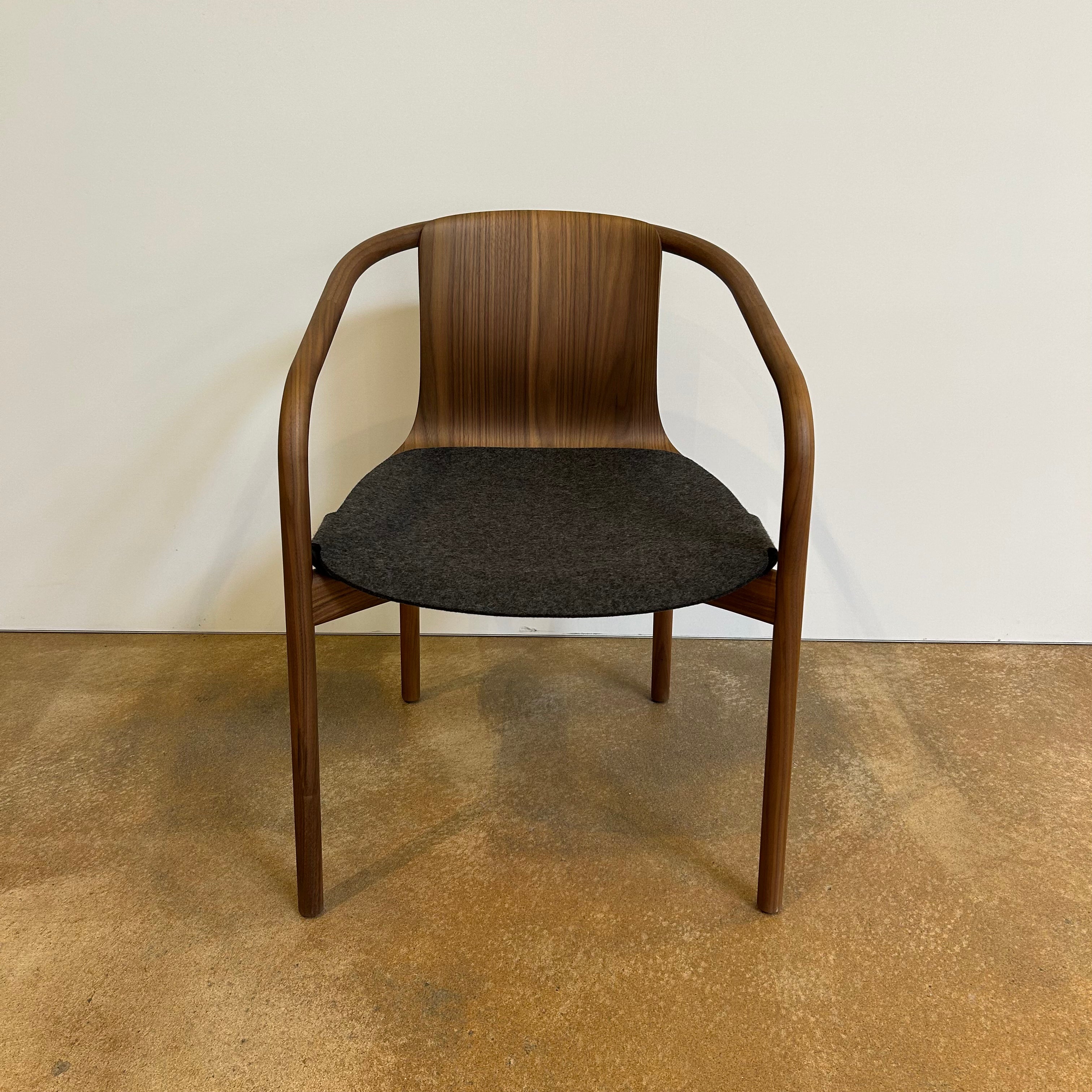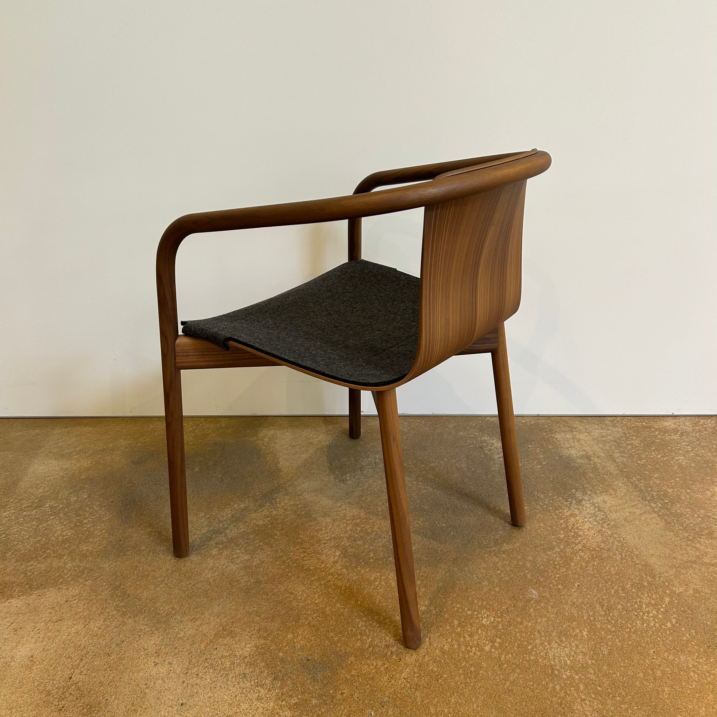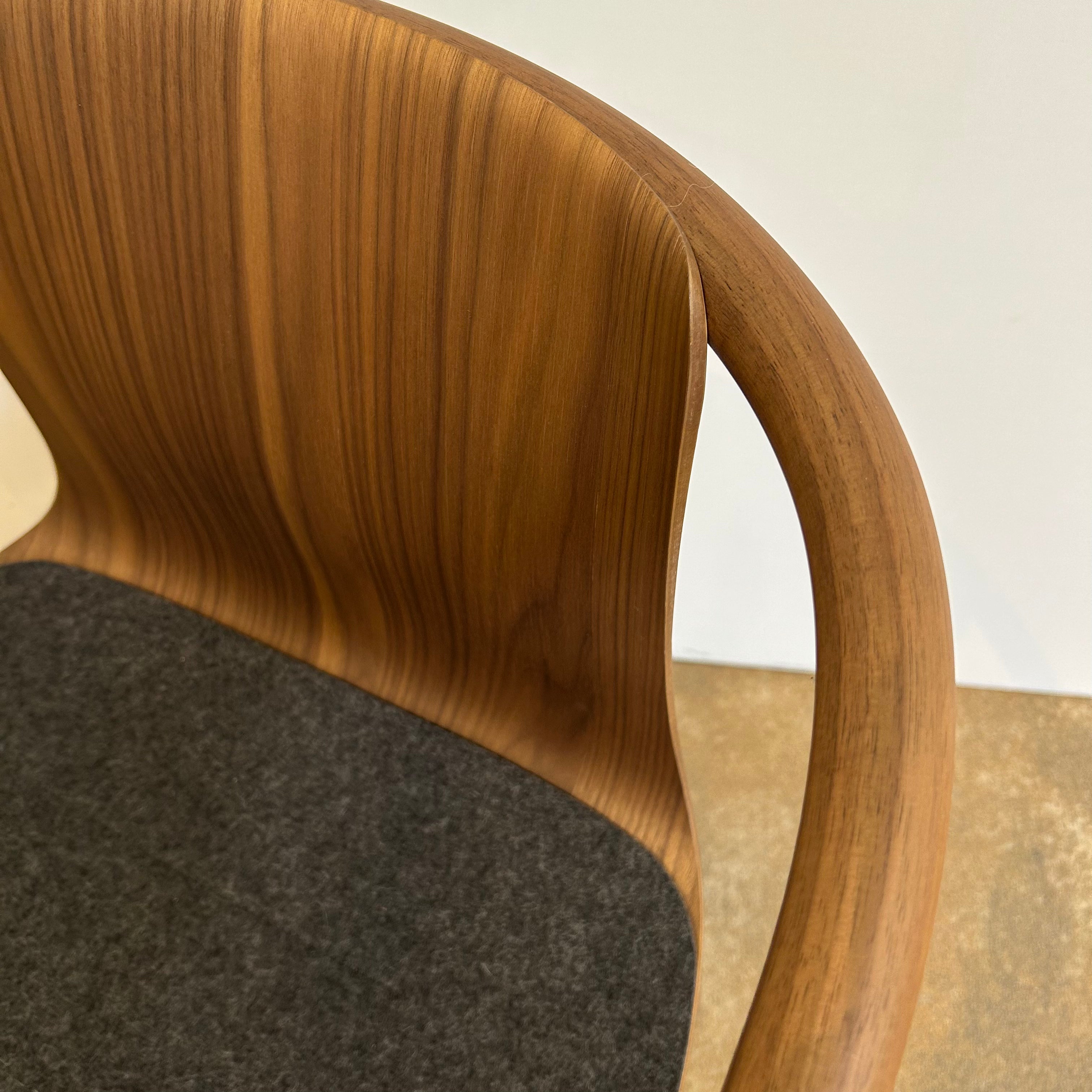 Der Osuu Chair von Walter Knoll, entworfen von Foster + Partners, besticht durch seine filigrane Silhouette aus dampfgebogenem Massivholz und geformter Sperrholzschale. Mit nur ca. 6 kg Gewicht vereint er formale Leichtigkeit, ergonomischen Sitzkomfort und nachhaltige Materialien wie FSC®-zertifizierter Nussbaum. Unsichtbare Verbindungen und ein Sitzpolster aus Wollfilz setzen auf dezente Eleganz – ausgezeichnet mit dem Red Dot und iF Gold Award 2025. Ideal für Wohn-, Büro- oder Empfangsbereiche.
