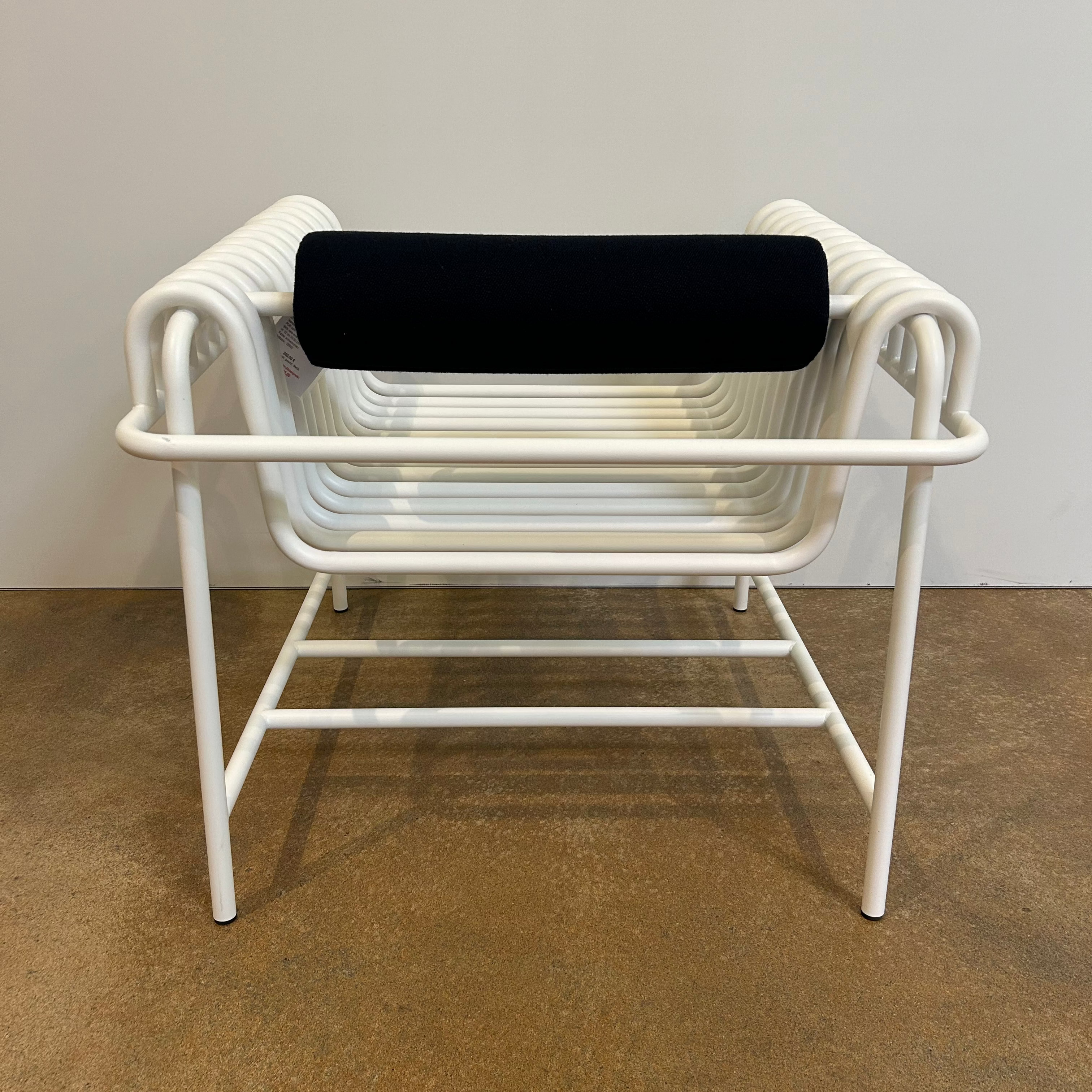 Der 22.24 ist ein Sessel aus gebogenem Stahlrohr. Seine schlichte Erscheinung beschreibt das absolut Notwendige bei jeder Biegung. Das perfekte Zusammenspiel von Form und Gelenk ermöglicht es, Sitzschale und Rahmen mit einer einzigen Bewegung zu verbinden. Während der als durchgehende Schlaufe gestaltete Korb die Armlehnen des Stuhls bildet, indem er die Seitenrahmen überlappt, verhindert die Rückenlehne in Form eines geraden Rohres das verrutschen des Korbes nach hinten. Das optional Kissen ist die perfekte Ergänzung zum 22.24 Sessel und ermöglicht durch die kräftige Farbpalette fast unendliche Kombinationen. Dank seiner Verzinkung und Pulverbeschichtung ist der 22.24 nicht nur ein Statement für jedes Interieur, sondern kann auch im Außenbereich eingesetzt werden.